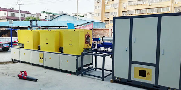 中頻加熱鍛造爐由中頻電源、感應器爐體、爐體平臺,氣缸送料裝置(自動送料機)時間控制系統、紅外溫度分揀機構等幾部分組成;(根據需要選配自動化機械手)。